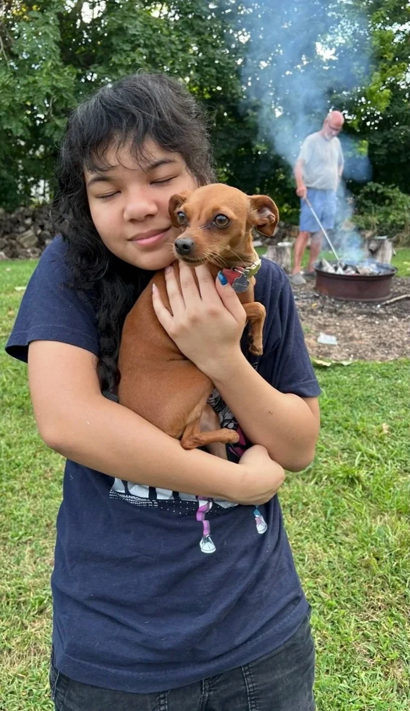 Enjoy this photo of Ava enjoying some cuddles from Charleigh the Lighthouse dog.